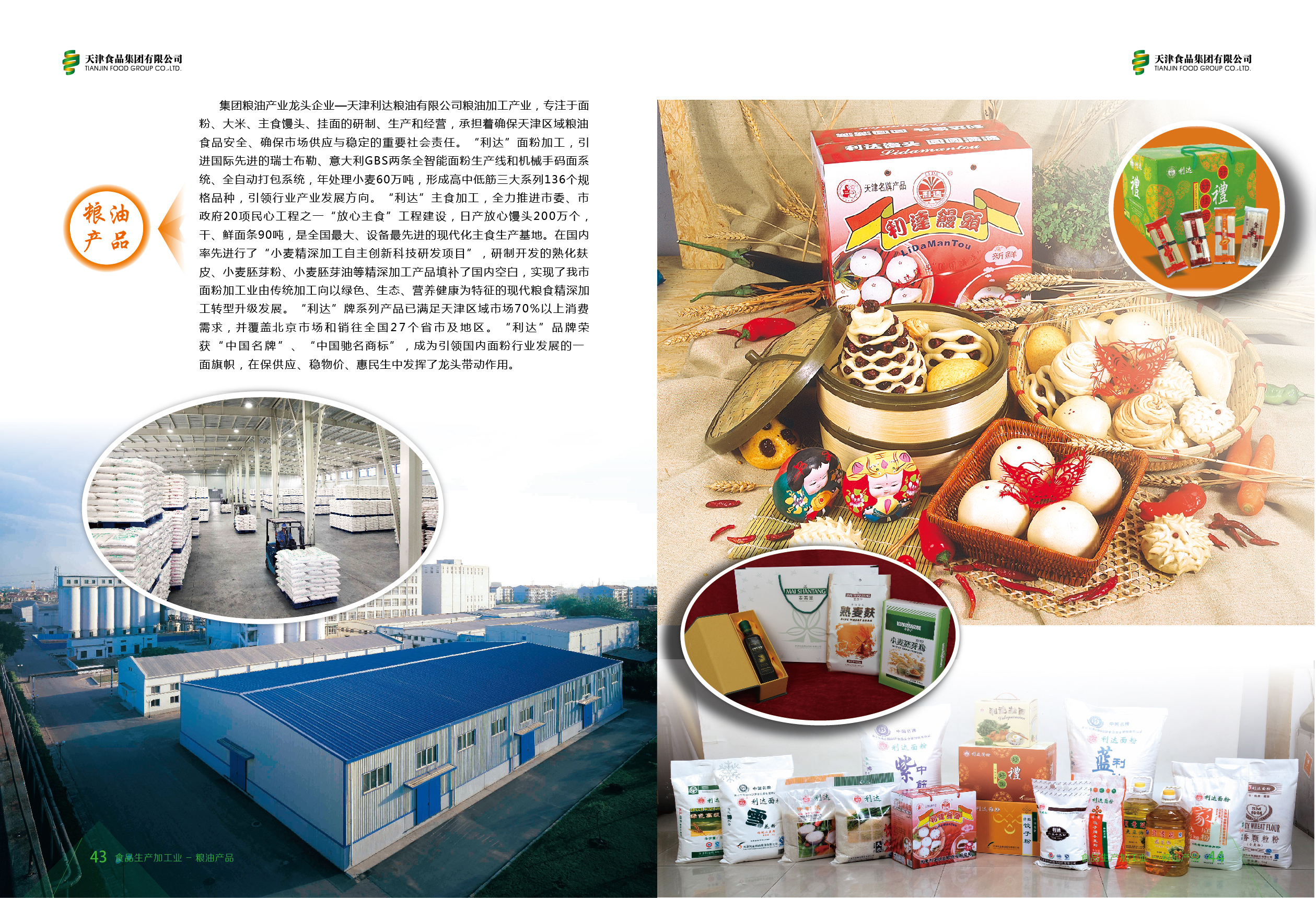 集團(tuán)糧油產(chǎn)業(yè)龍頭企業(yè)——天津市利達(dá)糧油有限公司專注于面粉、大米、主食饅頭和掛面的研制、生產(chǎn)和經(jīng)營(yíng),“利達(dá)”品牌在全國(guó)享有盛譽(yù),利達(dá)饅頭和利達(dá)蒸食花樣系列,品種多樣、麥香濃郁,年產(chǎn)量達(dá)4700萬個(gè)。在國(guó)內(nèi)率先進(jìn)行“小麥精深加工自主創(chuàng)新科技研發(fā)項(xiàng)目”,實(shí)現(xiàn)我市面粉加工業(yè)由傳統(tǒng)加工,向綠色、生態(tài)、營(yíng)養(yǎng)健康為特征的現(xiàn)代精深加工轉(zhuǎn)型升級(jí)發(fā)展。