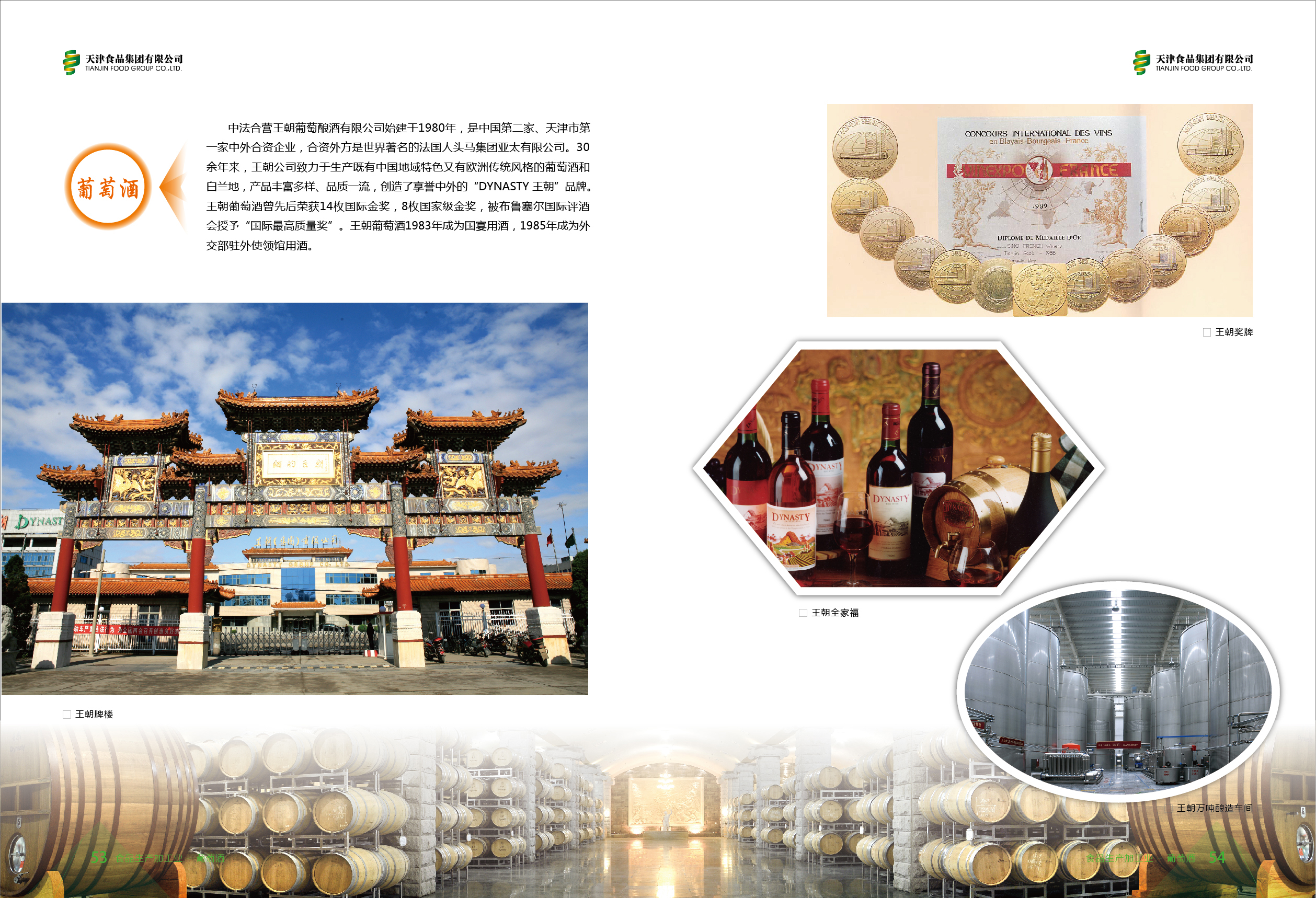 中法合營(yíng)王朝葡萄釀酒有限公司始建于1980年,是中國(guó)第二家、天津市第一家中外合資企業(yè)。近40來(lái),王朝公司致力于生產(chǎn)既有中國(guó)地域特色又有歐洲傳統(tǒng)風(fēng)格的葡萄酒和白蘭地,產(chǎn)品豐富多樣、品質(zhì)一流,創(chuàng)造了享譽(yù)中外的“DYNASTY 王朝”品牌。