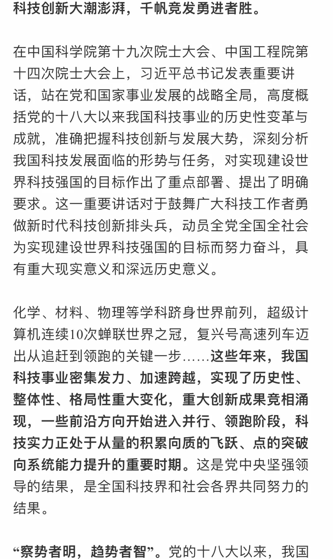 深刻把握科技創(chuàng)新與發(fā)展大勢(shì)—— 一論學(xué)習(xí)貫徹習(xí)近平總書(shū)記兩院院士大會(huì)重要講話(huà)