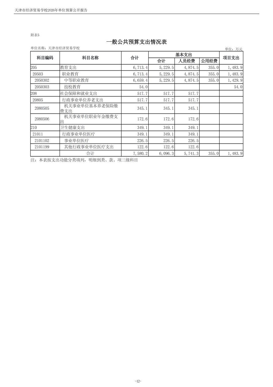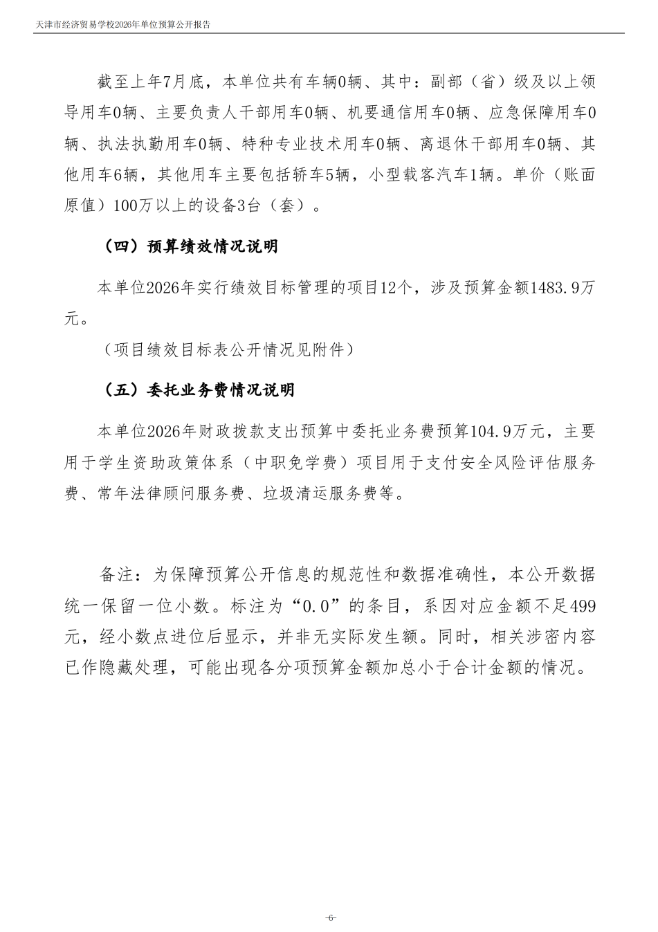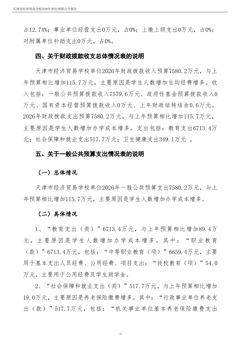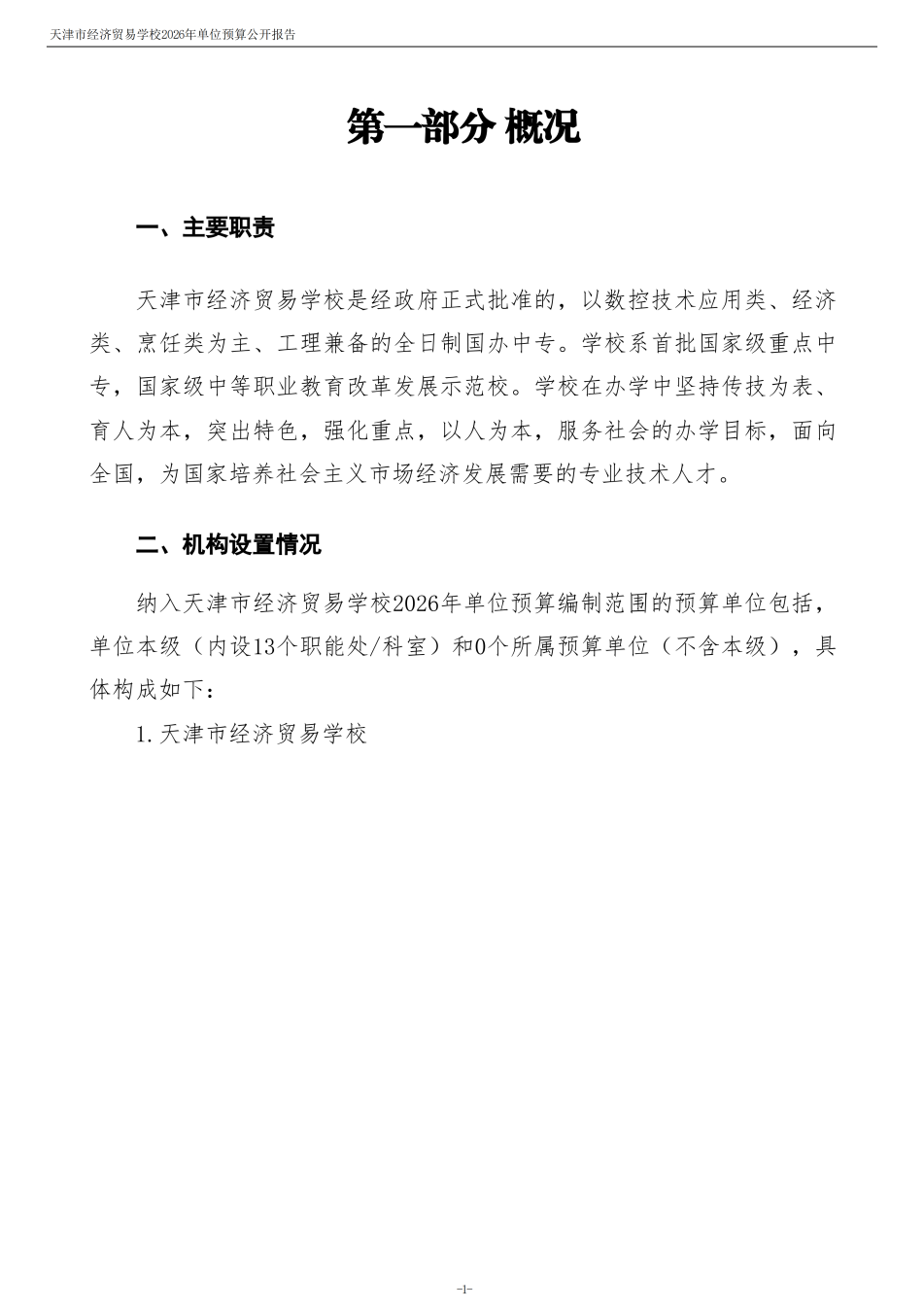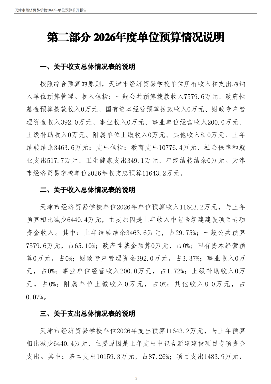 天津市經(jīng)濟(jì)貿(mào)易學(xué)校2026年度單位預(yù)算